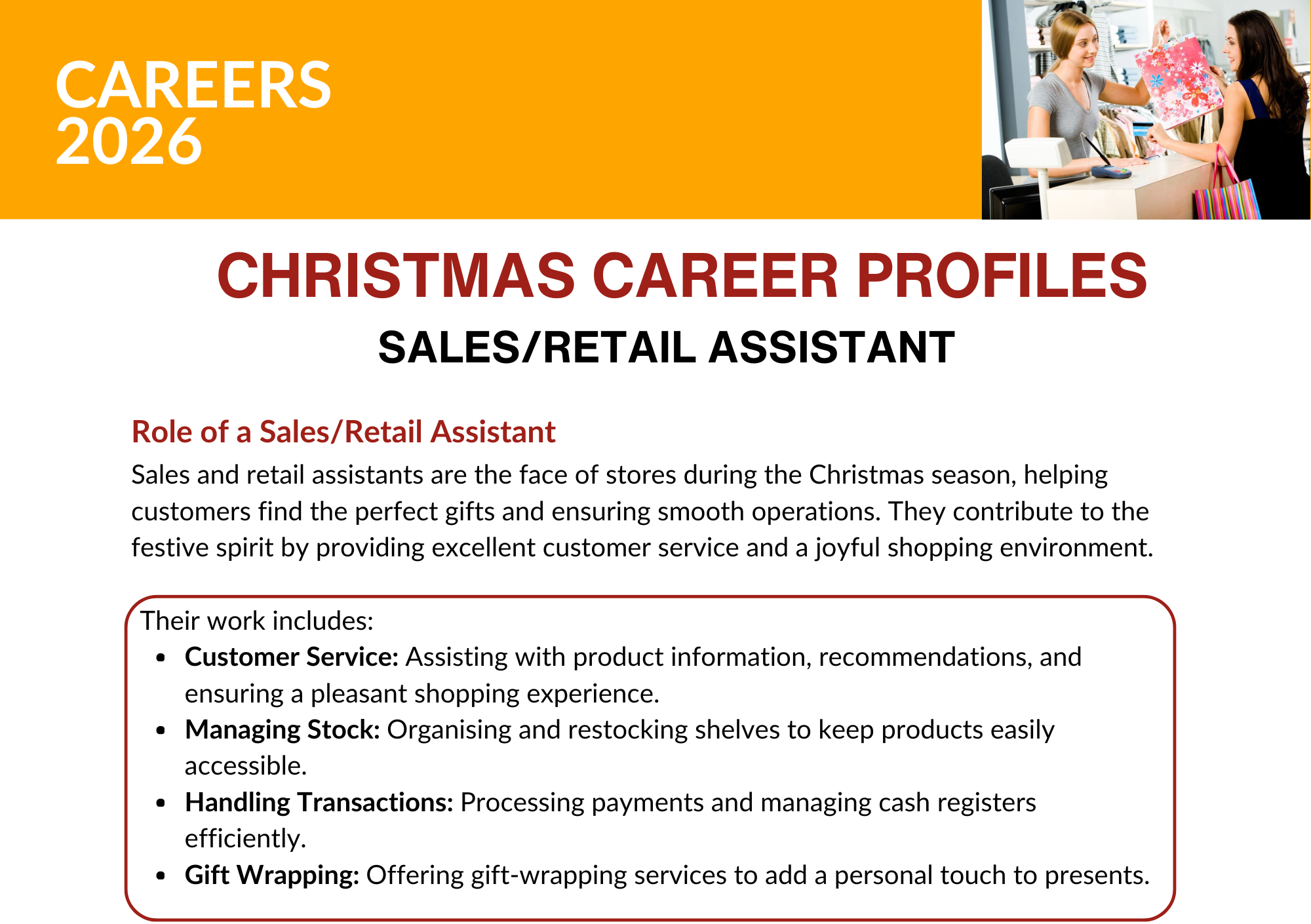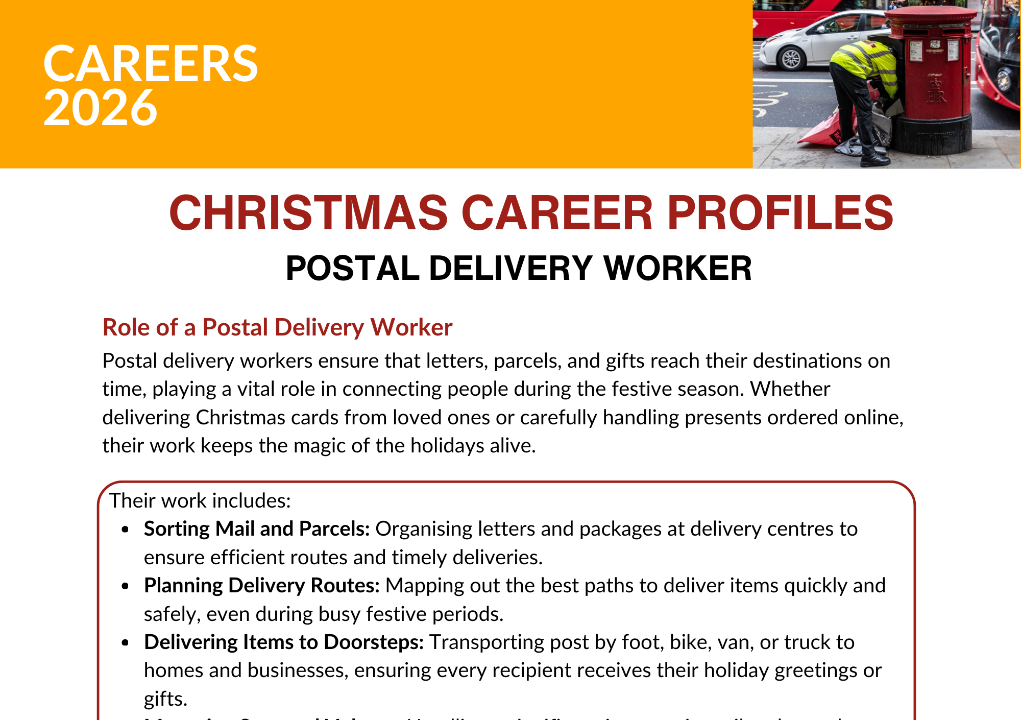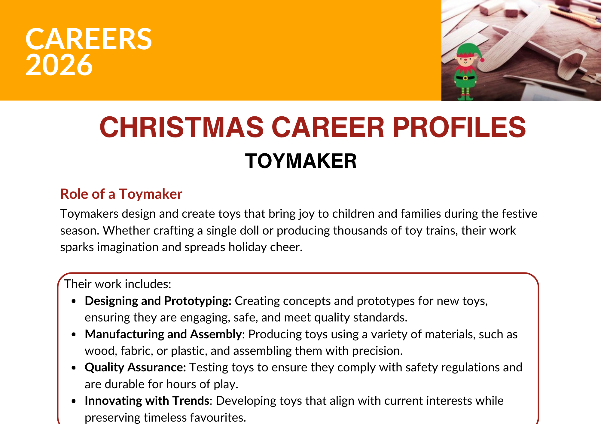 - Three Christmas Job Profiles: Give your students insight into a range of careers that hold extra significance during the holiday season.