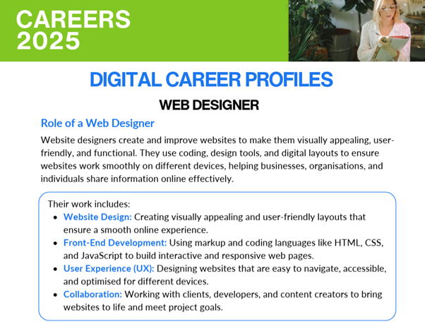 Welcome to our collection of free resources crafted to inspire students exploring careers in the digital industries! Dive into our tools designed to help educators guide young minds toward exciting and impactful digital career pathways.