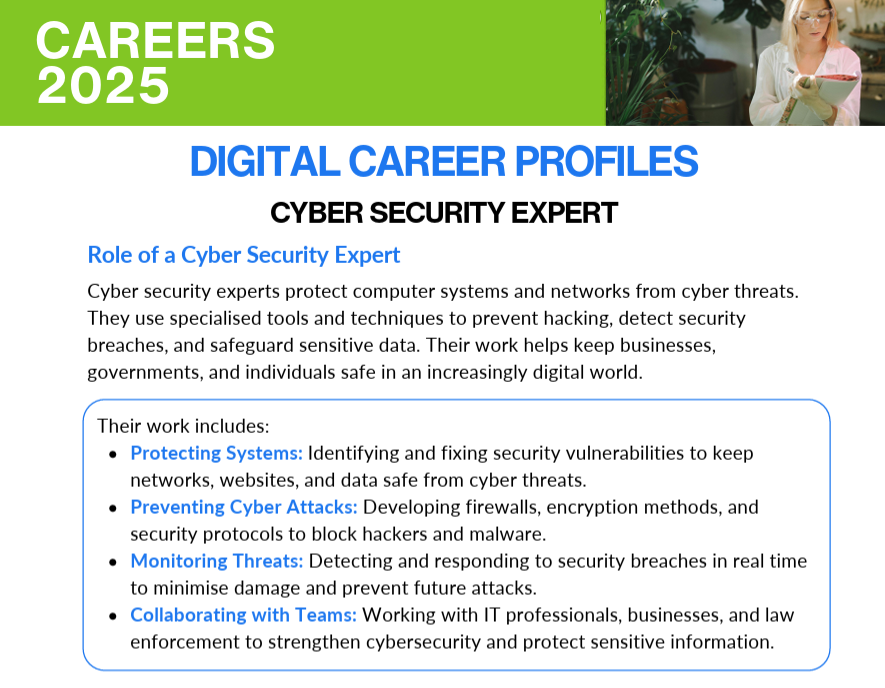 - Posters: Download our vibrant and engaging posters that showcase digital careers - perfect for inspiring students and sparking curiosity in the classroom.
