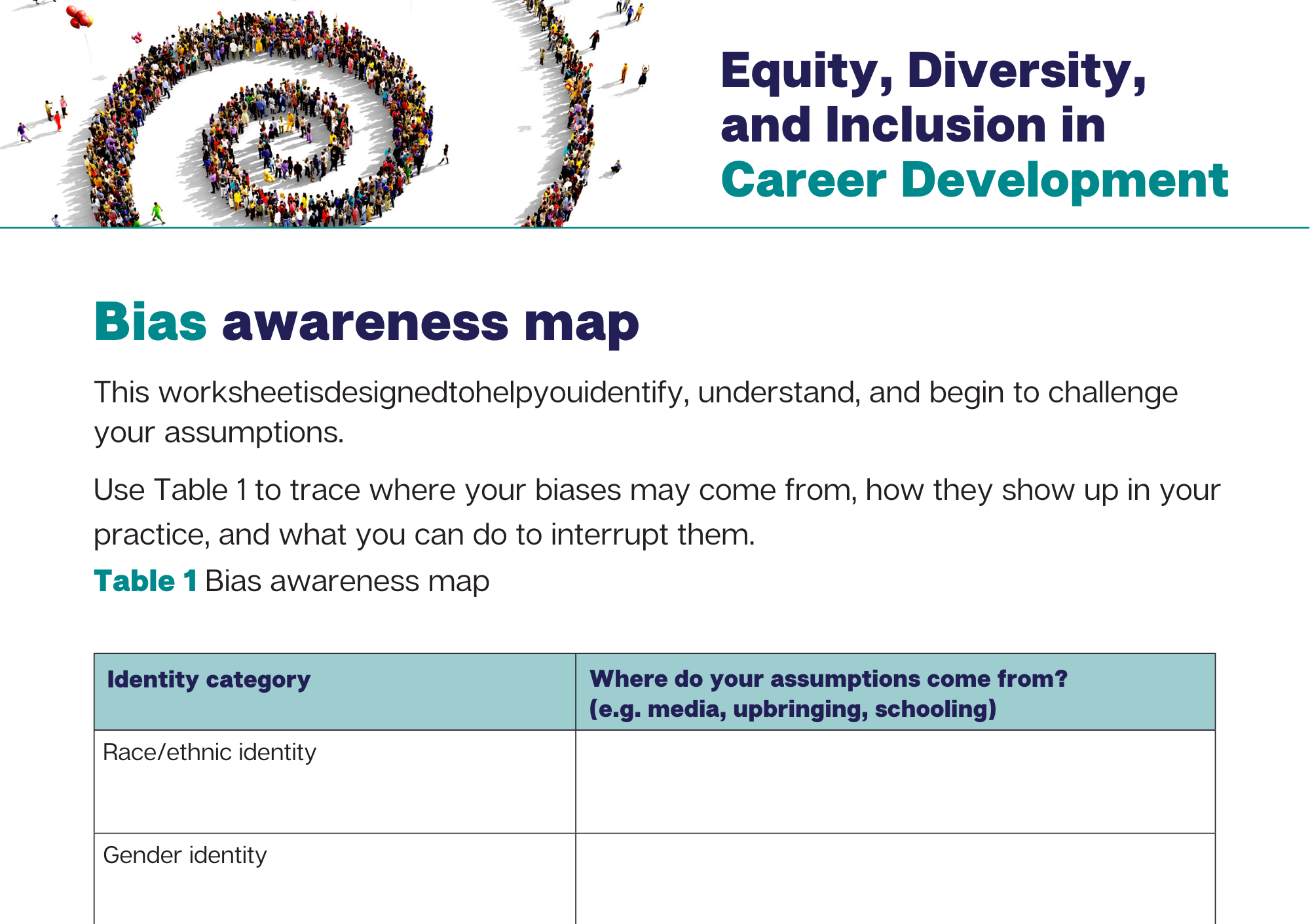 - Bias awareness map: Designed to help you identify, understand, and begin to challenge your assumptions