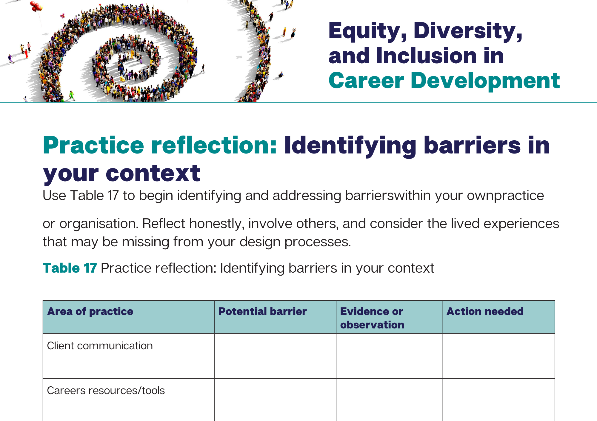 - Practice reflection: Use Table 17 to begin identifying and addressing barriers within your own practice or organisation
